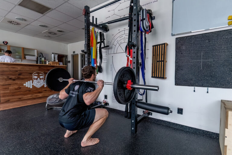Posilovna funguje jako soukromý prostor pro naše klienty – umožňuje cvičení trenéra a maximálně 4 cvičenců najednou.